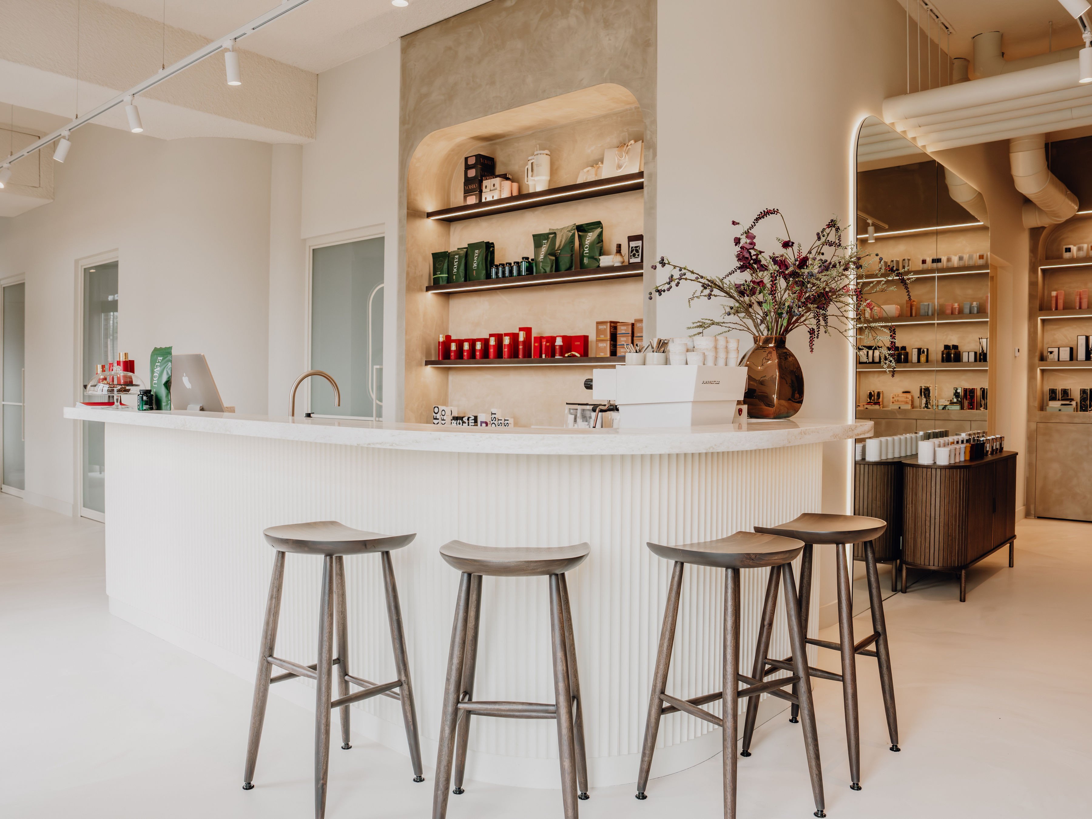At Studio Twenty Eight, everything revolves around luxury, relaxation, and personal care. From exclusive beauty treatments to a contemporary reformer Pilates studio, everything is designed to let you shine. After your treatment or training, you are welcome to enjoy a delicious cup of coffee or smoothie in our stylish lounghe. Also discover our carefully selected beauty & welness products to enjoy the luxury of Studio Twenty Eight at home.